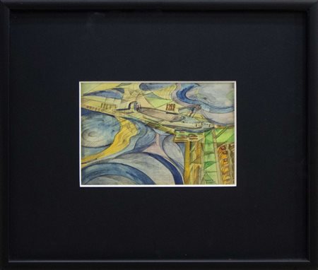 Lot 12 Uberto Bonetti, La Spezia, anni Trenta, tecnica mista su carta, 30,5x21 cm, pubblicazione numero 151, pag 210 del catalogo 'Anni 30. L'Italia nelle aeroviste di Uberto Bonetti' a cura di Adriana Bonetti