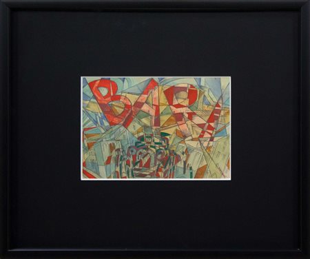 Lot 13 Uberto Bonetti, Bari, anni Trenta, tecnica mista su carta, 30x20,6 cm, pubblicazione numero 031, pag 261, catalogo 'Anni 30. L'Italia nelle aeroviste di Uberto Bonetti' a cura di Adriana Bonetti