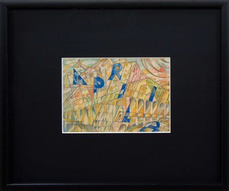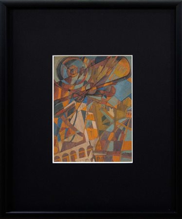 Lot 14 Uberto Bonetti, Verona, anni Trenta, tecnica mista su carta, 23x31, pubblicazione num 377, pag 201, catalogo 'Anni 30. L'Italia nelle aeroviste di Uberto Bonetti' a cura di Adriana Bonetti
