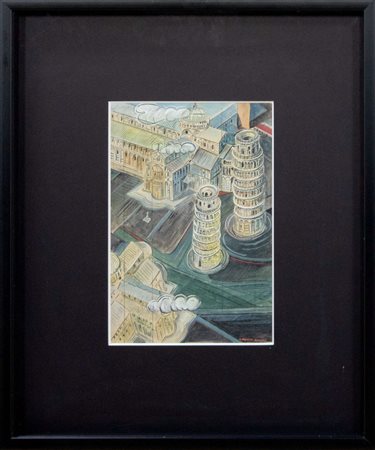 Lot 20 Uberto Bonetti, Pisa, anni Trenta, tecnica mista su tela, 34x23 cm, pubblicazione, num 274, pag 244 catalogo 'Anni 30. L'Italia nelle aeroviste di Uberto Bonetti' a cura di Adriana Bonetti
