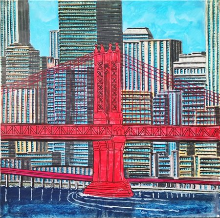 Lot 3 CAPUTO TONINO Lecce 1933 - 2021 "Manhattan Bridge" Olio su tela cm 50x50. Firmato sul fronte in basso a sinistra. Al verso titolo e firma. Autentica su foto a cura del Maestro.