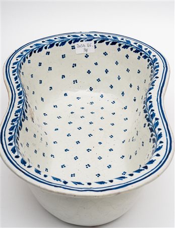 Bidet fine XIX secolo con bordo mistilineo decorato in blu a serto di fiori e a puntini all'interno