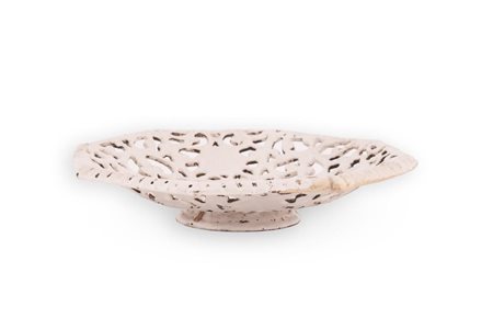 Crespina in maiolica a fondo bianco, di forma ottagonale e traforata a formare motivo geometrico.