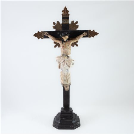Crocifisso in legno scolpito e laccato, XIX secolo