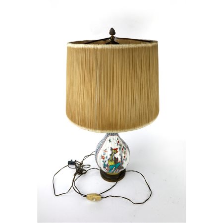 28 x 10 cm in porcellana policroma, base montata in ottone, con paralume. -