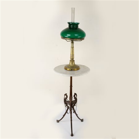 50 x 17 cm 76 x 35 cm con basamento a tripode in ghisa e piano d'appoggio in marmo. Lampada elettrificata ma non funzionante. -