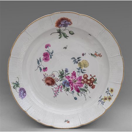 Lot 0882 Grande piatto in porcellana decorato a fiori in policromia su fondo bianco Frankental sec.XVIII