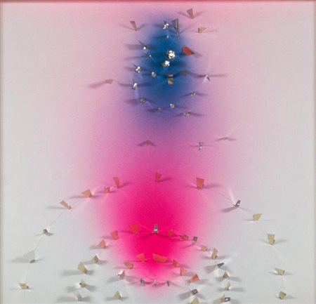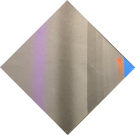 Lot 12 Franco Costalonga, Tecnica mista e lamelle specchianti su tavola, 50x50 cm, Reflex, 1999; Autentica dell'artista su foto