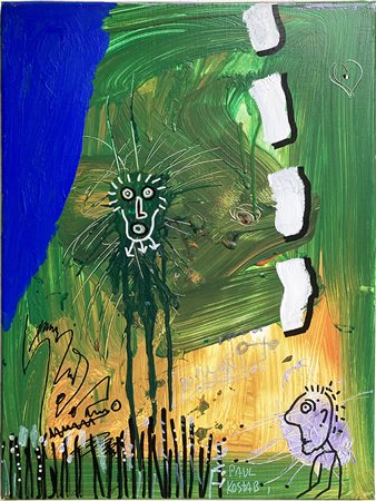 Lot 7 Paul Kostabi, Olio e acrilico su tela, 64x45 cm, In love with the idea of having an idea, 2005; Pubblicato sul Catalogo Gary Indiana