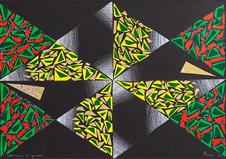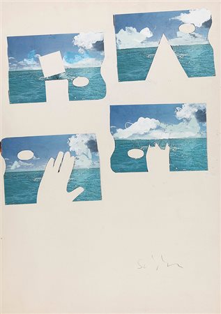 Lot 11 Ennio Finzi, Collage e pastello su cartoncino nero, 35x50 cm, Alterando lo sguardo, 2016; Autentica dell'artista su foto; Firmato e datato in basso a destra; Titolo in basso a sinistra