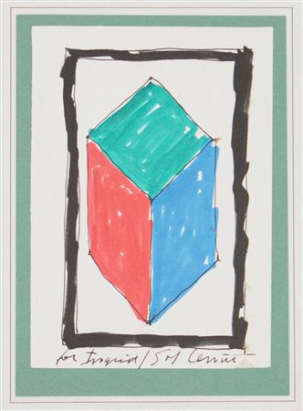 Lot 19 Sol Lewitt, Inchiostro e pennarello su carta, 16x10 cm, Cube, 1997; Pubblicato sul Catalogo Generale al n. 407, pag. 102; Provenienza: Collezione privata, Berlino; L'autenticità di quest'opera è stata confermata dagli archivi Sol Lewitt, New York