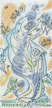 Lot 23 Andrè Masson, Pastello e pennarello su carta da lucido, 35x21 cm, Charmeuse et papillon (Ammaliatore e farfalla), 1973 ca.; Reca annotazioni probabilmente dell'artista.