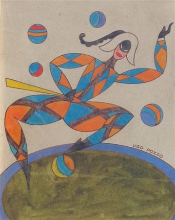 Lot 1 Ugo Pozzo (Turin/Torino 1900 - 1981) Arlecchino, Anni ‘30;Acquerello su carta, 25 x 19,5 cm