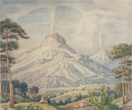 Lot 5 Konstantin Fedorov Bogajewski (1872 - 1943) Tepe Kermen Crimea, 1942;Acquerello su carta applicato su cartone, 34 x 40 cm