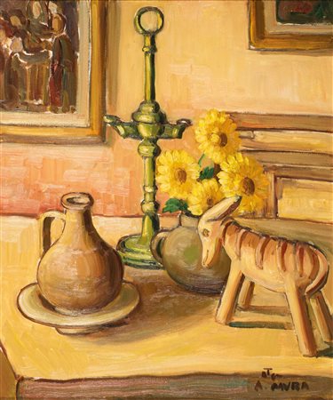 Lot 8 Antonio Mura (1902 - 1972) Natura morta con cavallino;Olio su tela, 60 x 50 cm