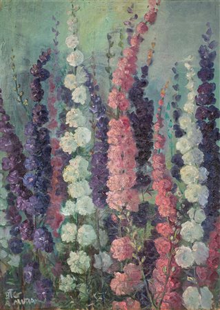 Lot 9 Antonio Mura (1902 - 1972) Fiori di speronella, 1950;Olio su tela, 70 x 50 cm