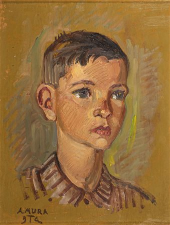 Lot 11 Antonio Mura Ritratto di ragazzo con camicia a righe, fine anni ‘30;Olio su masonite, 46 x 36 cm