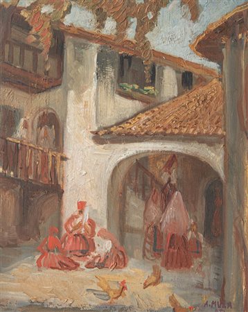 Lot 12 Antonio Mura (1902 - 1972) Cortile;Olio su tela, 35 x 29 cm