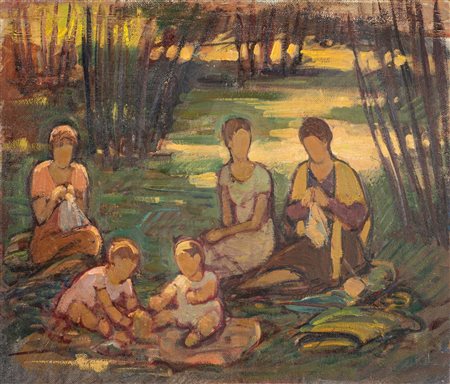 Lot 13 Antonio Mura (1902 - 1972) Pirastu;Olio su masonite, 51 x 60 cm