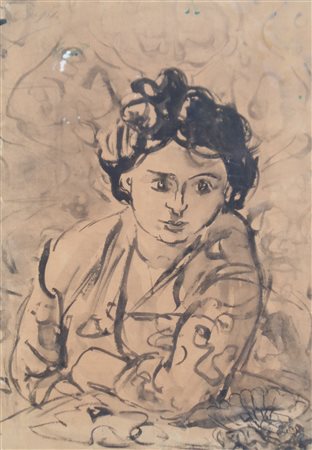 Lot 14 Luigi Spazzapan (Gradisca d’Isonzo 1889 - Turin/Torino 1958) Ritratto di Ginia, 1927/1936;China su carta applicata su tela, 73 x 49 cm, al retro etichette "Galleria L’Isola