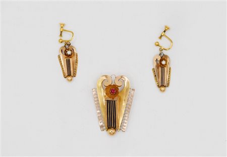 Lot 9 Demiparure, spilla e orecchini, in oro