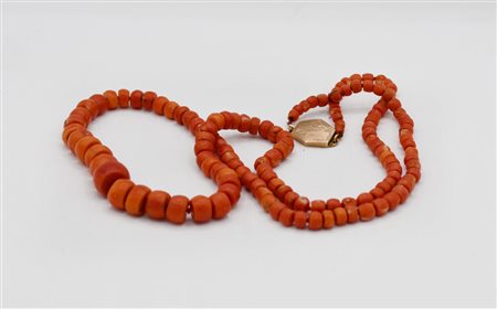Lot 16 Collana in corallo naturale rosso intenso, a scalare