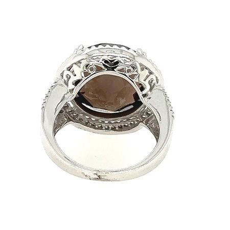 Lot 10 ANELLO IN ORO BIANCO 14K 7.90 GR CON SMOKY QUARTZ DA 12.30 CARATI + DIAMANTI PER 0.52 CARATI COLORE F- PUREZZA SI TAGLIA 7 - CERTIFICATO GEMMOLOGICO MAROZ DIAMONDS LTD MEMBRO ISRAEL DIAMOND EXCHANGE - RNG30513