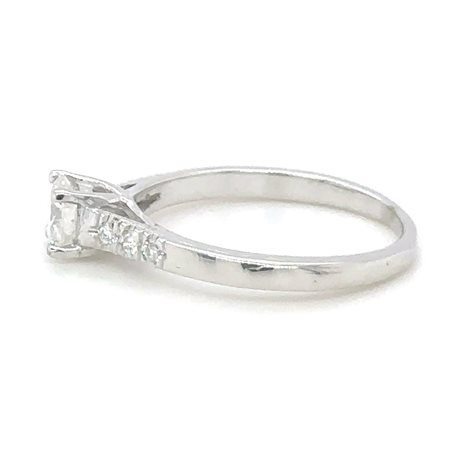 Lot 12 ANELLO IN ORO BIANCO 14K 2.15 GR CON DIAMANTE CENTRALE DA 0.46 CARATI COLORE G PUREZZA I1 + DIAMANTI LATERALI PER 0.09 CT COLORE F PUREZZA SI1-2 TAGLIA 6 - CERTIFICATO GEMMOLOGICO MAROZ DIAMONDS LTD MEMBRO ISRAEL DIAMOND EXCHANGE - RNG40401