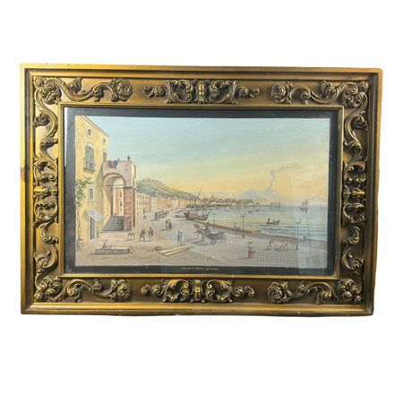 Lot 14 Dipinto guazzo (tempera su carta), periodo XIX secolo scuola Italiana, raffigurante Ischia e Procida dal mare. Dimensioni interno cornice: 44x23 cm. Dimensioni compreso cornice: 52x30 cm. Reca firma in basso a sinistra da Antonio Coppola. Opera in buone condizioni. Antonio Coppola, pittore napoletano, nato il 21 gennaio 1839, studiò all'Istituto di Belle Arti di Napoli, ove fu più volte premiato. Dipinge a tempera e ad olio, ed è specialista nel paesaggio. Dimorò in Atene circa due anni, e colà eseguì due grandi soffitti di un palazzo principesco. Fu quindi a Bari, ove eseguì diversi ritratti e ritornato a Napoli, lavorò indefessamente, esponendo in molte occasioni pregevoli lavori. Lavori degni di nota sono pure le sue pergamene all'acquerello, che egli tratta con fina ed accurata maestria.