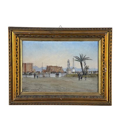 Lot 9 Dipinto guazzo (tempera su carta), periodo XX secolo scuola Italiana, raffigurante Veduta di Napoli da Chiaia.