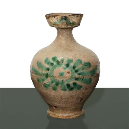 Lot 11 Orciolo con manico in maiolica di Caltagirone con decorazioni verdi e gialle, 19° secolo h cm 15