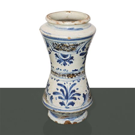 Lot 13 Albarello in maiolica di Caltagirone decorata a mano nei toni blu e manganese a motivi floreali, 18° secolo h cm 25