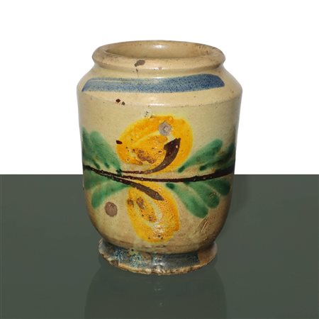 Lot 23 Vaso in ceramica di Caltagirone decorato policromo con foglie e fiori, Primi 20° secolo h cm 16