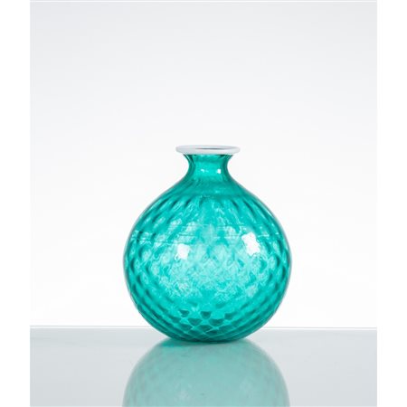 A “RETICOLI” MODEL GLASS VASE BY VENINI. -
