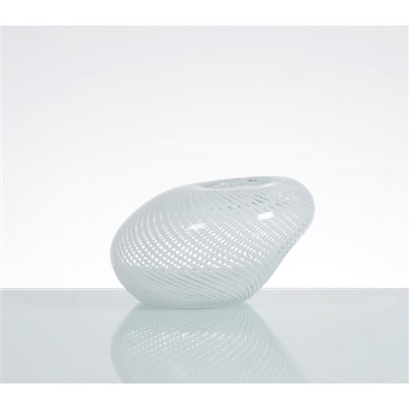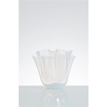 Vaso modello “Fazzoletto” in vetro lattimo opalescente.