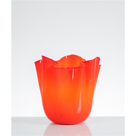 Vaso modello “Fazzoletto” in vetro opalino rosso. Etichetta di produzione, firma alla base e iscrizione “Venini 2017 per Ceo International, premio prima categoria, terzo classificato”.