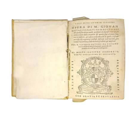 Lot 2 Giovanni Boccaccio (Certaldo 1313-Certaldo 1375) - I casi degli huomini illustri, 1547 in 8° (cm 15X10) Venezia, Andrea Arrivabene,1547.Venezia, Andrea Arrivabene,1547.