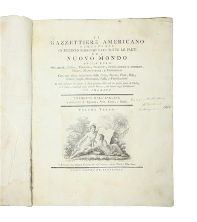 Lot 12 Il Gazzettiere americano contenente un distinto ragguaglio di tutte le parti del nuovo mondo Voll. II e III , 1763 mm 300x231 In Livorno, per Marco Coltellini, 1763. In-folio, carta vergellata, copertina in carta pecora. Vol. II e IIIIn Livorno, per Marco Coltellini, 1763. In-folio, carta vergellata, copertina in carta pecora. Vol. II e III.