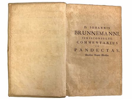 Lot 20 Johannis Brunnemanni, jurisconsulti, Commentarius in Quinquaginta Libros Pandectarum. Tomus Primus in 2 Volumi. Tomus Secundus in 2 Volumi., 1762 Edizione Colonie Allobrogum, Sumptibus Fratrum Cramer Edizione Colonie Allobrogum, Sumptibus Fratrum Cramer