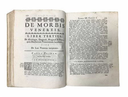 Lot 21 Joanne Astruc - De morbis venereis, 1741 h cm 24x18 In regio Francia Collegio Professore Medico. Venezia Apud Jo Mariam Lazzaroni, superiorum permissu, ac privilegio.In regio Francia Collegio Professore Medico. Venezia Apud Jo Mariam Lazzaroni, superiorum permissu, ac privilegio.