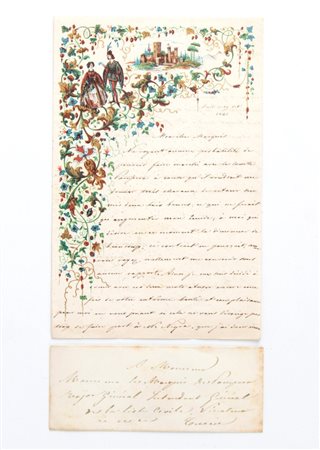 Lot 8 Lettera su due facciate , testo autografo con firma originale di Eugenio di Savoia Carignano, datata 19 Oct 1841, indirizzata al Marchese Maggior Luogotenente Generale della Civica, con busta. Sigillo in ceralacca rossa. Testo in francese. Ottime condizioni