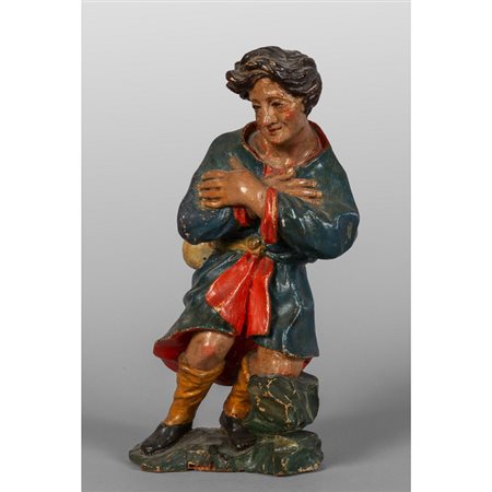 Lot 0005 Pastore figura in legno intagliato e laccato in policromia Napoli sec.XVIII