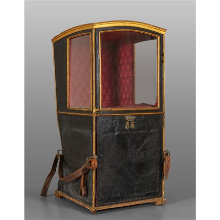 Lot 0006 Portantina rivestita in cuoio con profili in legno dorato Genova fine sec.XVIII