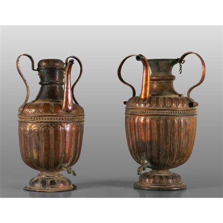 Lot 0012 Coppia di versatoi in rame sbalzato sec.XIX