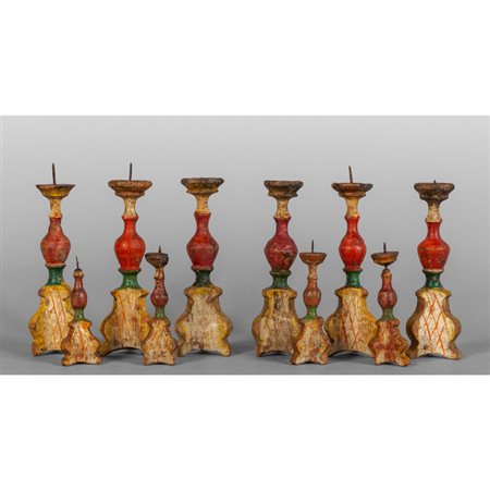 Lot 0020 Dieci piccoli modelli di candelieri in legno policromato sec.XVIII