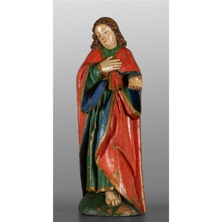 Lot 0021 San Giovanni Evangelista scultura in legno intagliato e laccato in policromia metà sec.XVI