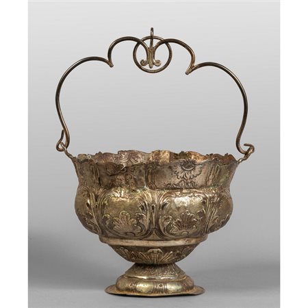 Lot 0022 Secchiello Luigi XV in argento sbalzato a motivi di pellacce presa ad archetto decorata a volute Genova punzone della Torretta sec. XVIII