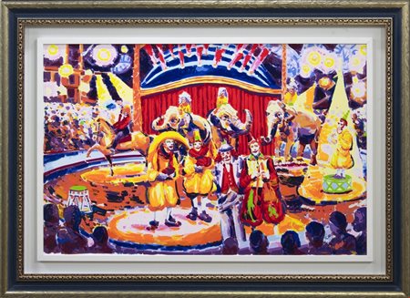 Lot 1 Athos Faccincani, Luce sul circo di Montecarlo, anni Duemila, Serigrafia polimaterica a 36 passaggi di colore, cm 54x84, Esemplare 3 di 150, Firma al Verso, Cornice non inclusa