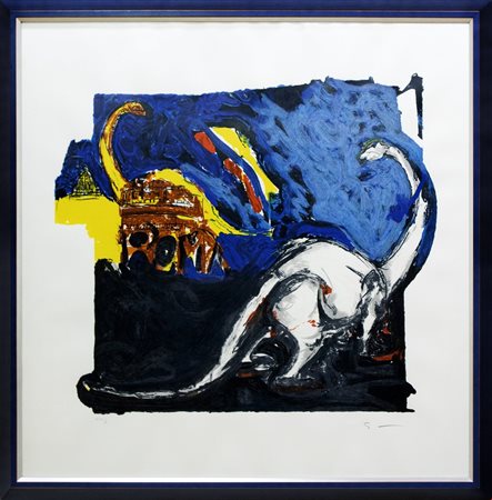 Lot 11 Concetto Pozzati, Senza Titolo, anni Novanta, Serigrafia a colori, cm 70x100, Esemplare 75 di 130, Cornice non inclusa