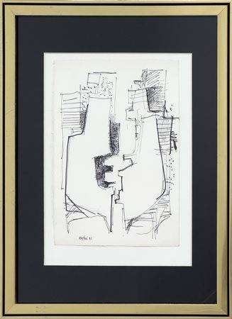 Lot 1 Gualtiero Nativi, Studio, 1991, China su carta, cm 32x21.5, Archiviazione presso Archivio Gualtiero Nativi, Firma e Anno al recto, Cornice in omaggio